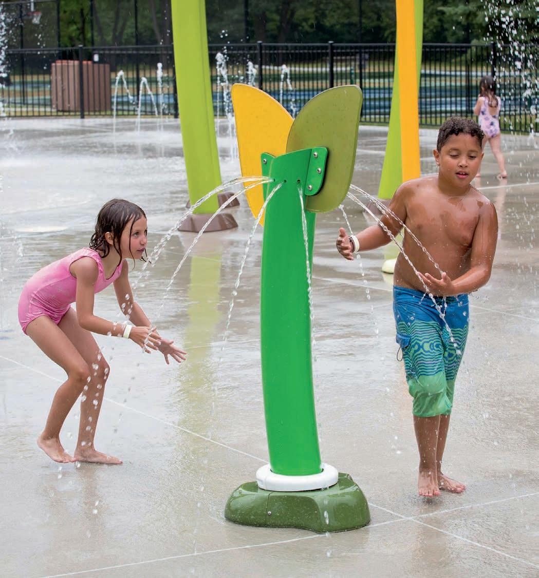 Splash pads powered by HydroLogix put kids in control of the action. One push and the entire splash pad comes to life. When the water shuts off, kids turn it into part of the game as they race back to start the splashing all over again. More details on pages 130-131. To see our complete product offering, visit aquatix.playlsi.com.
