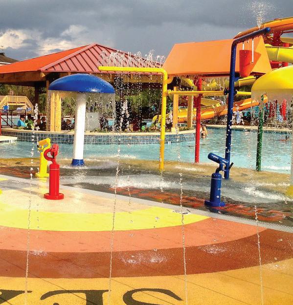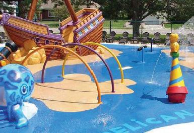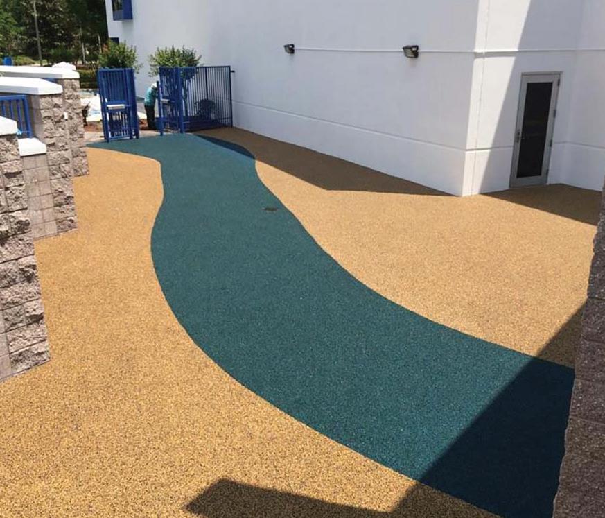 No Fault® Surfaces for Water Play is manufactured on site. The blending of multiple color combinations to create custom inlaid graphic designs and patterns makes it the perfect play surface for pool decks, splash pads, and themed environments.