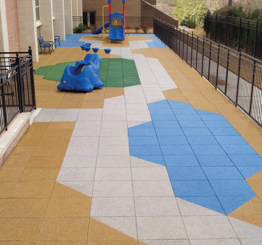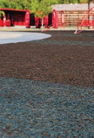 The bottom impact absorbing layer is made of clean, recycled rubber buffing. The top decorative wear layer consists of highquality EPDM or TPV rubber granules. The wear layer is available in a wide variety of color blends and provides the option to create fun theme shaped designs.