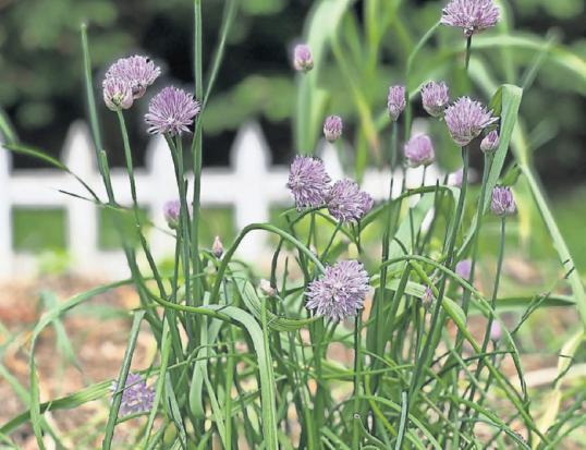 This May 24, 2022, photo provided by Jessica Damiano shows chives blooming in Glen Head, New York. Chives are among many edibles that can be used in "foodscaping," a gardening style that includes ornamental and edible plants growing side-by-side. (JESSICA