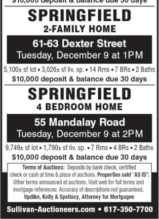 sgl fam, 848 sf liv area, 0.3 ac lot, 4 rm, 2 bdrm, 1.5 bth, Hampshire: Bk 15092, Pg 133 11:00 AM - SPRINGFIELD
