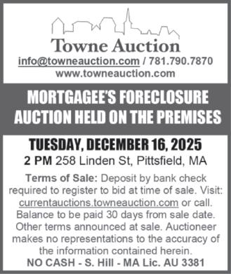 MORTGAGEES’ REAL ESTATE AUCTIONS TO BE SOLD ON THEIR RESPECTIVE PREMISE MONDAY DEC. 22, 2025