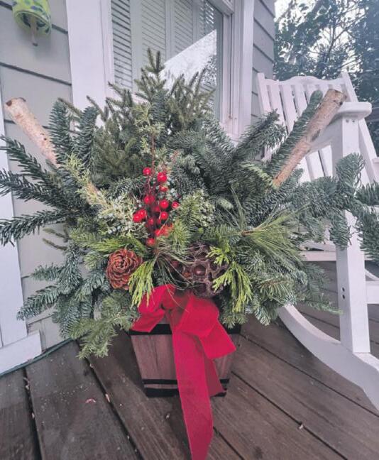 That means filling vacant pots with evergreen branches foraged from my trees and shrubs, hanging cedar swags on the porch and placing a wreath on the door.