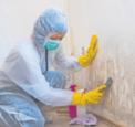 • Wear gloves: The EPA recommends wearing chemical protection gloves that extend to the mid-forearm, Huntley says. Regular household cleaning gloves may not provide enough protection when working with mold and mold-killing chemical agents. Look for the designation “chemical resistant.”