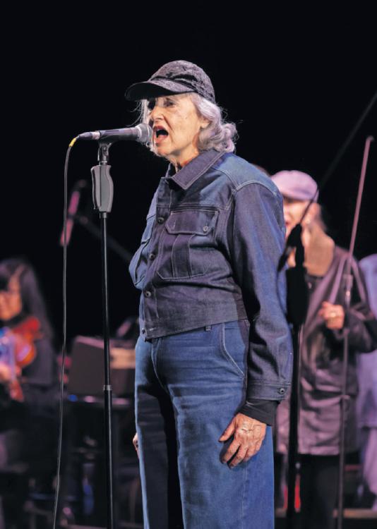 “About six months ago, I said to a friend that I really missed singing, which I hadn’t done for quite a while after losing hearing in one ear. Two days later, I got a call from Bob Cilman and it was like the universe was answering me,” she said of the Young@Heart chorus director.
