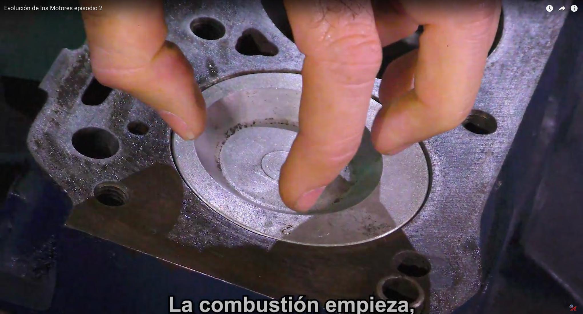 En los motores de combustión interna, la combustión se da en la cámara de combustión. A este lugar es donde llega la mezcla comprimida, la cual es encendida por un chispazo que viene de la candela. El combustible transforma su energía latente en calor y los gases se expanden, lo que genera una presión que empuja el pistón hacia abajo y se da el giro del cigüeñal.