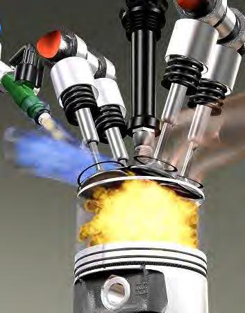En la combustión el pistón alcanza el PMS, entonces la bujía produce una chispa eléctrica que da paso a la quema de la mezcla, los gases se expanden por lo que esta pieza es impulsada hacia abajo.