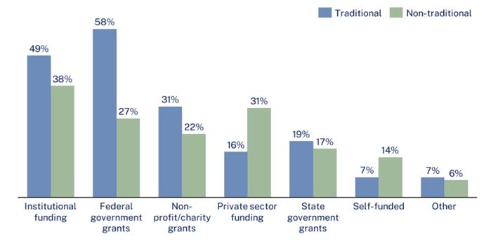Non-traditional researchers (33% of total active researchers¹²): private sector workers (e g pharmaceuticals, MedTech, biotech); those in clinical roles who produce or support research (e.g. medical doctors, nurses, midwives, allied health workers, etc.)