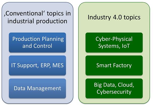 Fig. 2: Comparison of topics in conventional industrial production and the Industry 4.0[16]