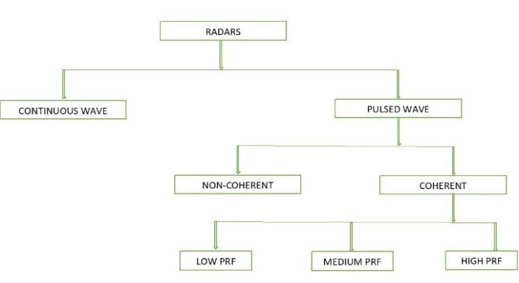 For example, on the same plane, there is a broadcast and receive antenna. The radar receiver's lowest detectable received power is referred to as the minimum detectable signal (MDS) denoted byδ min [22-25] Classification of waveformis given in fig 1.