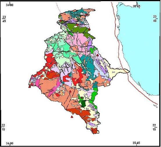 Figure 2: Geologic Map of Wadi Hodein, (NWRC, 2011)