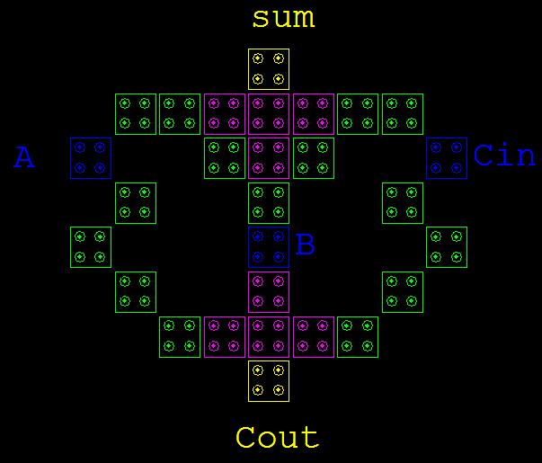 Various QCA full-adders have been presented to date. The first one (presented in 1994) is composed of five three-input majority gates and three inverters (Tougaw and Lent, 1994). This full-adder uses QCA coplanar wire.