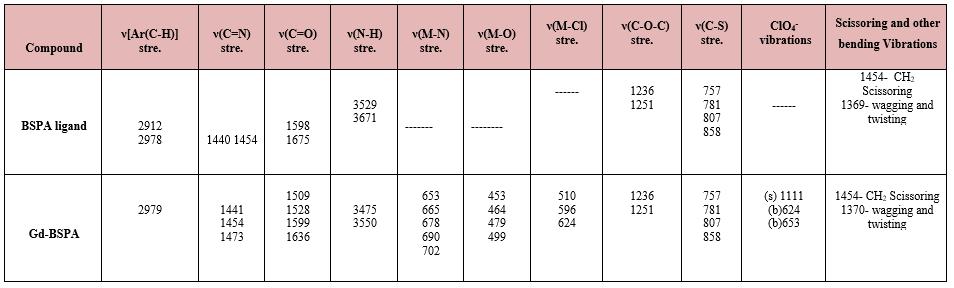 Table 3: IR spectra of BSPA ligand with Gd3+ complex