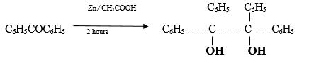 A mixture of benzophenone (7.5 gm, 0.041 mole) zinc dust (4 gm) glacial acetic acid (110 ml) and water (22 ml) is refluxed for 2 hours. The solution is filtered (if necessary) and cooled. The separated benzpinacol is filtered and crystallized from glacial acetic acid. The yield is 4.5 gm (30%).