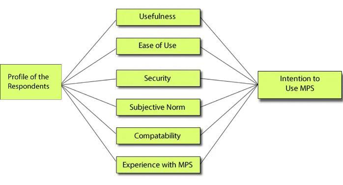 Thegoalofthe studytoovercomethegap is toanalyzesomeimportantaspects whichdrive MPSadoptionofthefoodservice business analytically. In the current study, seven predictors were incorporated to develop a model of MPS adoption, including Security, Compatibility with lifestyle, Subject norms, Ease of use, Perceived usefulness, and past MPS experiences, all are conventional in Technology Acceptance Model