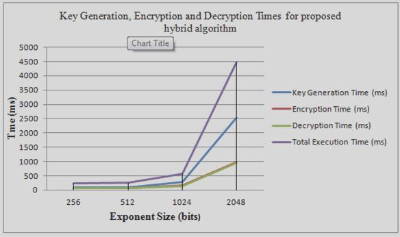 Figure 1: Key Generation, Encryption and Decryption Times for proposed hybrid algorithm (ms)