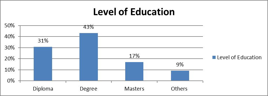 The researcher sought to know the level of education of the respondents. The results showed that 31% of the respondents had a diploma certificate, 43% of the respondents had an undergraduate degree as their highest level of education. Similarly, 17% of the respondents indicated they had a master’s degree certificate whereas the remaining 9% indicated that they had other qualifications which ranged from certificate to other short courses. It is imperative to conclude that majority of the respondents had the desired qualifications to perform their responsibilities at the company while at the same time had the understanding of the objective of the study and therefore could give relevant information to achieve the objectives of this study.