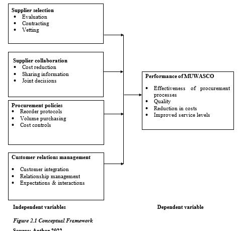 Several studies have been done in the discipline of supply chain management practices and performance. For instance, Joel, (2010) did a study on challenges facıng supply chain management in the oil marketıng companies in Kenya. Mwale (2014) did a study on supply chain management practices and organizational performance of large manufacturing firms in Nairobi which was limited to private sector. These studies failed to address the effects of supplier collaboration, selection, procurement policies and organization culture on performance and more specifically water and sanitation companies in Kenya.