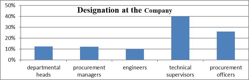 The researcher sought to know the position the respondents held at the company and therefore asked the respondents to indicate their designations at the company. Results in Figure 4.1 below showed that majority of the respondents were technical supervisors at 40%, followed by procurement officers at 26%. Departmental heads and procurement managers tied at 12% whereas engineers comprised 10% of the total respondents of the study. This shows that majority of the respondents were able to understand the requirements of the study in form of the knowledge and information that would facilitate the study.
