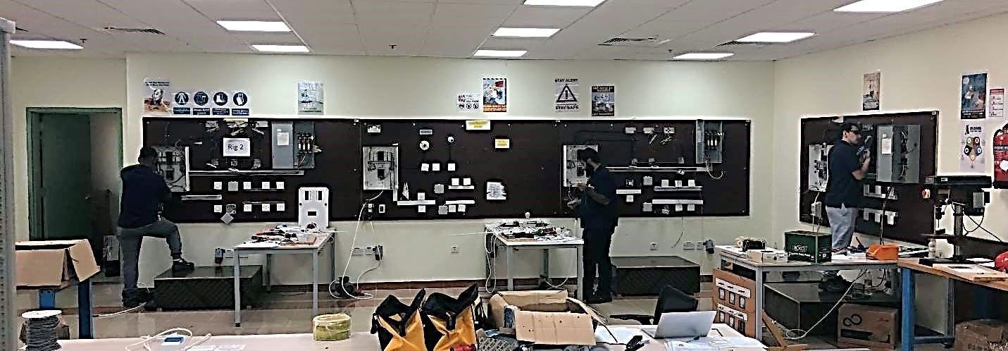 The second observation was of a vocational class held in the electrical laboratory. This class was a mixed level class consisting of two groups of students. One group of students were in the final stages of study for a Diploma in Electrical Technology, taught by a bilingual Arabic and English-speaking teacher. The second group were preparing for their mid-
