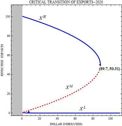values. From 2018 to 2020, the annual average value for the United States dollar Index is calculated and compared to the transition value. If the data-based value of USDX is smaller than the required critical value of USDX, the system is said to be resilient.
