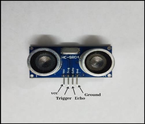 The sensor has 2 openings on its front see in Fig 3. One opening of ultrasonic sensor called transmitter, transmits ultrasonic waves, the other receives them. The speed of sound is approximately three hundred forty one (341) meters per second in air. The ultrasonic sensor uses time difference between sending and receiving the sound pulse to determine the distance of object from sensor. To calculate distance, the mathematical equation used is: