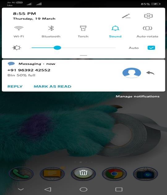 If the dustbin is full (75% of the dustbin is filled with the waste) at a certain level. Dustbins are provided with a sensor (ultrasonic sensors) which helps in tracing the level of the dustbin [2]. When the dustbin is full of waste at a certain level i.e. 75% full of garbage then the alert SMS (message) is sent to the authorities. The smart bins concept is shown in the below Fig-1: