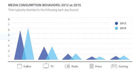 Fig. 3. Online media vs traditional media consumption - 2012 to 2015