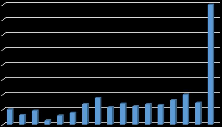 Figure 5.1: Plot of Radon Concentration (Bqm-3) against Area