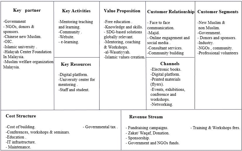 Keywords: Wellbeing, New Chinese Muslim, Al-Wasatiyyah, Islamic values, BMC, VPC, University of the Future, SDG8, Community engagement.