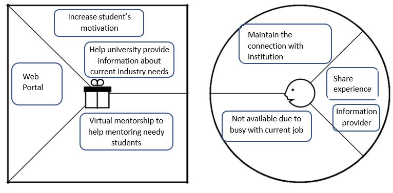 The customer relationship describes the way how this project will continuously connect with users to improve customer experience. The ties for this project can be through alumni and employer, intermediary for students.