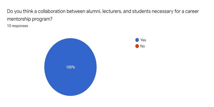 Moreover, all respondents are agreeing to collaborate between alumni, lecturers and students for the career mentorship program