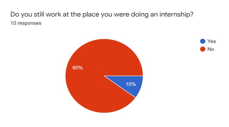 This section is for alumni where we conduct a survey to know which alumni still work at their internship place. Majority 90% of respondents do not continue to work at the internship place and only 10 % choose to stay and work in an internship place.