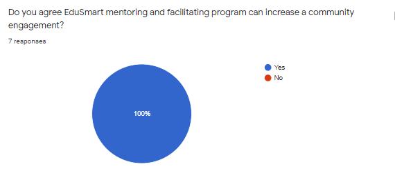 Besides that, respondents were asked on how engaging the EduSmart program is and how it can benefit the future community engagement. As seen above, all respondents agreed that EduSmart mentoring and facilitating is beneficial towards community engagement as when the students have graduated from their studies, they can always return and be absorbed to become the facilitators, so, in a way around, everything the students gain will be practical for them to apply and benefits other youths in the future. These steps are taken to reach the goal of zero school dropout rates in Malaysia and increase community engagement by offering job opportunities to EduSmart students.