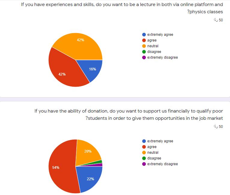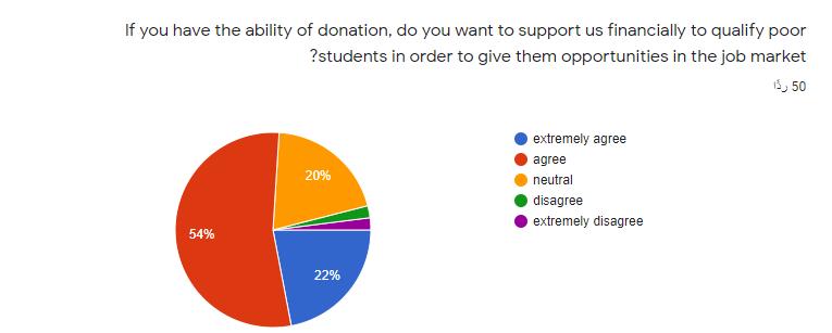 One of the companies operates in the online sales field, and the next company works in the digital marketing field Of course, because both companies are working with an online platform, they appear positive impressions for using elearning platforms, especially with fresh employees. The latter need specific courses on sales or marketing areas to improve their skills Government staff wishes that e-learning applies to the government sectors as it contributes widely to spreading knowledge and developing skills. It also helps the government by decreasing the ignorance and increasing the awareness of societies Moreover, they emphasized that a significant segment of the sectors in many fields turned to online and the others will turn to online soon The donors were willing to support our program QPS financially, and they ask if the program will rely on itself in the future or not. Our team answer was, of course, by making the beneficiaries will contribute to teaching others, and the commission that can be earned from companies by making project from them or giving them employees will subsidize us generally to continue our approach.