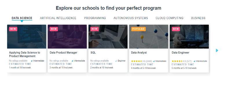 DataCamp is an online data science learning platform offering tutorials and courses in data science. Students can master data analysis from the comfort of their browser, at their own pace, and tailored to their needs and expertise