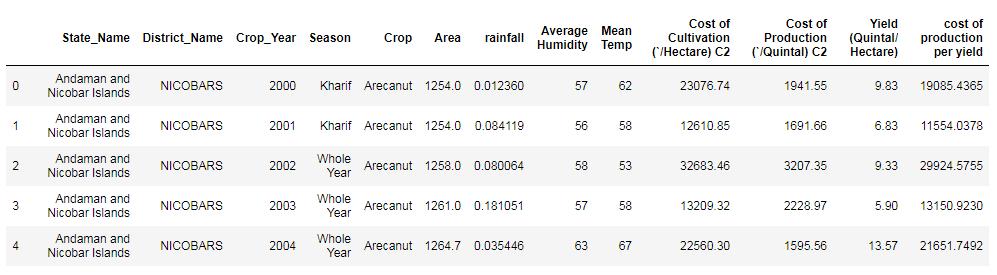 The analytical process started from data cleaning and processing, missing value, exploratory analysis and finally model building and evaluation. Finally we predict the crop using machine learning algorithm with different results. This brings some of the following insights about crop prediction. As maximum types of crops will be covered under this system, farmer may get to know about the crop which may never have been cultivated and lists out all possible crops, it helps the farmer in decision making of which crop to cultivate. Also, this system takes into consideration the past production of data which will help the farmer get insight into the demand and the cost of various crops in market.