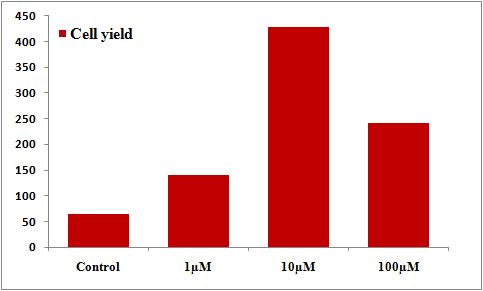 On exposure to cadmium of different concentrations for 24h, it was found that at 1μM the cell count markedly decreased but at concentrations of 10μM and 100μM it was found that the cell count was similar but reduced when compared with the control.