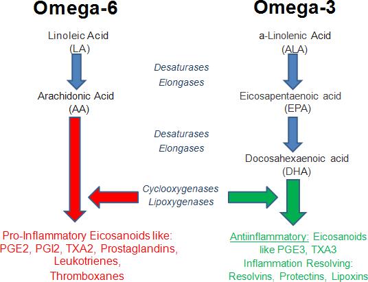 Fig 6: Biological & metabolic roles of omega-6 & omega-3 fatty acids.