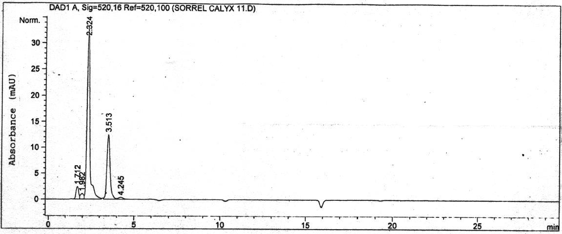 Figure 1: HPLC chromatograms of Hibiscus sabdariffa (Jamaican sorrel) Calyx samples