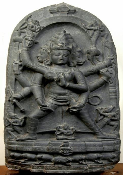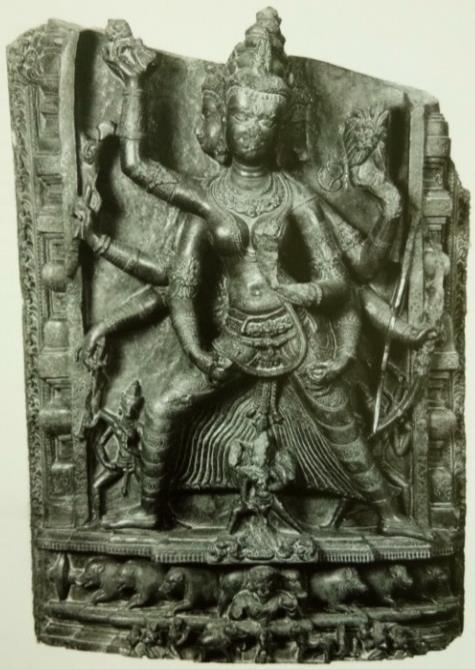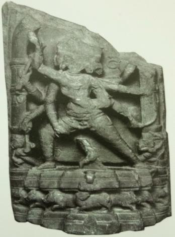 Another c.10th century CE image representing the Buddhist goddess Mārīcī (Fig.3) is preserved in the SAMK (Acc. no.05.283) and the exact find-spot of the image is unknown. The iconographic features of the three-faced and eight-armed deity are the same as the specimen hailing from Balurghat, West Bengal. This specimen is short in size measuring 57cm×28 cm compared to the previous specimens.
