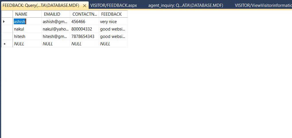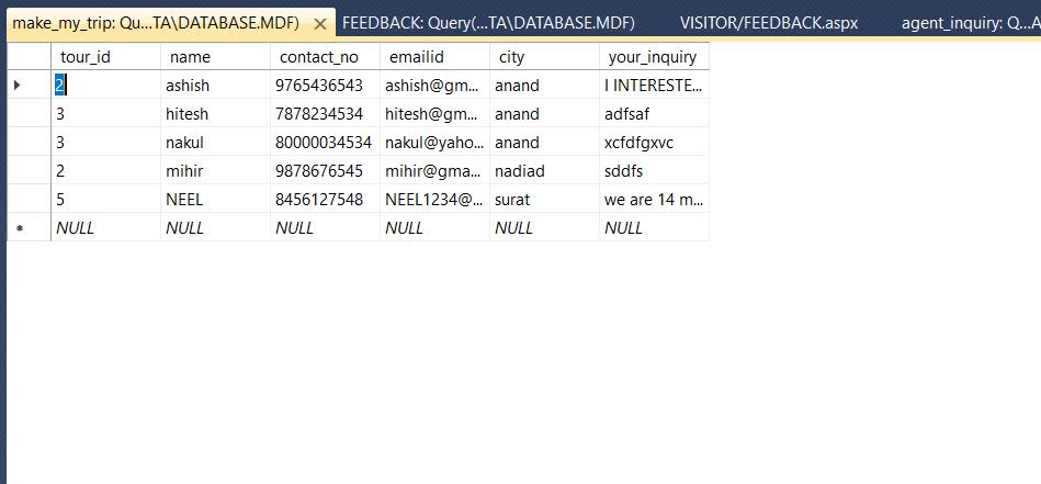 2)Feedback: In below diagram you can view a various entries I.e feedback which is given by client to the agent on their tour information.