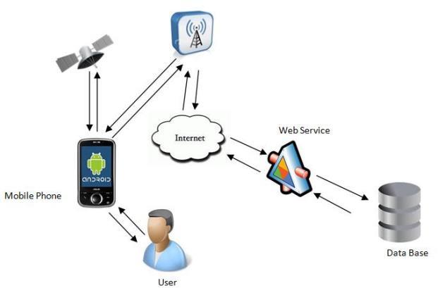 The system is designed around two main components, the web application and the web server. The web server serves the stored information through the web application. ”Google Maps” is used where map based services are required. The application may utilize wireless connectivity where available or 4G services to access the central web server through the Internet.Figure illustrates the logical system architecture of the web based tour guide. The user interacts with the web sites thorugh phone to access the tour guide information. The web server serves the correct information based on the location information and the user selections. This architecture provides high level of flexibility to provide up to date information to the users on request. External database provides a single point of update to the system and reduces the size of the application. Having a light weight application increases the systems usability and reliability. The web communicates with the web service through the Internet using XML and SOAP messages. The web application is designed to operate in two modes; “Map view” Map view provides three main functions, Path selector, Information provider and Virtual tour. Map view is developed using the Google Maps API. By selecting the interesting places marked on the map, the user is able to get access to the stored information. The application is able to provide this information while the user visiting the place or as off-site information.