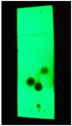 Above image is TLC of dexonamethason, under uv spectroscopy and saw a black spot in uv spectroscopy. Rf value is dexoma methason .