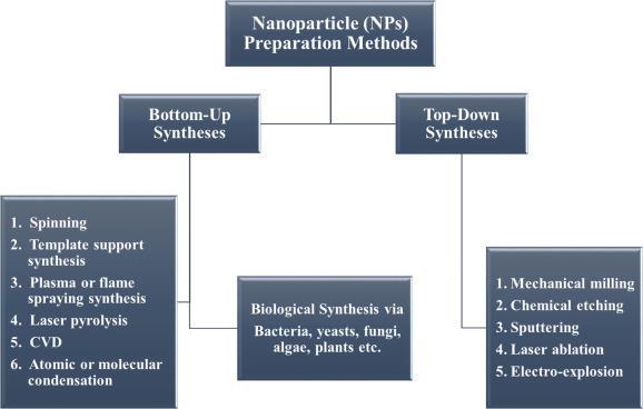 Various strategies is utilized for the synthesis of NPs, however these strategies ar loosely divided into 2 main categories i.e. (1) bottom-up approach and (2) top-down approach (Wang and Xia, 2004) as shown in theme one (Iravani, 2011). These approaches any divide into numerous subclasses supported the operation, reaction condition and adopted protocols.