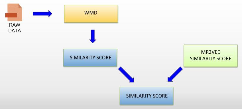 model=Keyed Vectors .Load_word2vec(...) //loading of algorithm functions and vector files model.init_sims(...) // normalising of vector in word2vec class distance=model.wmdistance(sen 1,sen 2) //comparing of sentences extracted from files in the form of WMD print() //printing of similarity index percentage .