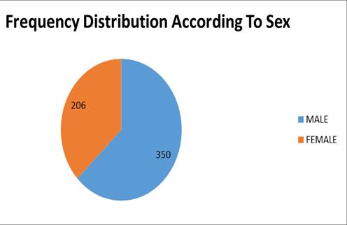 Table 3.1 above table shows that Male respondents had the highest number with 350 respondents which account for 63% and female 206 which is 37.0%.