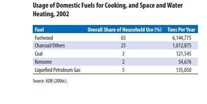 In addition, homes in urban areas often depend on fuelwood from forests to increase production for everyday cooking and sometimes use waste plastics and leather as fuel as well. In 85% of rural homes and about 15% of urban households, animal manure is used. the table below table describes the national-sector fuel.