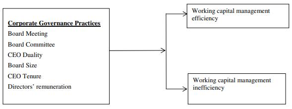 Ali, Stephen, Jung & Yanhui (2016) did a study on the impact of corporate governance on working capital management efficiency of American manufacturing firms. They used CEO tenure, CEO duality, and audit committee and board size to measure corporate governance. On the other hand, accounts receivables, account payables, CCC, cash conversion efficiency and sales growth as well as current ratio were used to measure working capital management efficiency. They concluded that corporate governance improves a firm‟s working capital management efficiency.