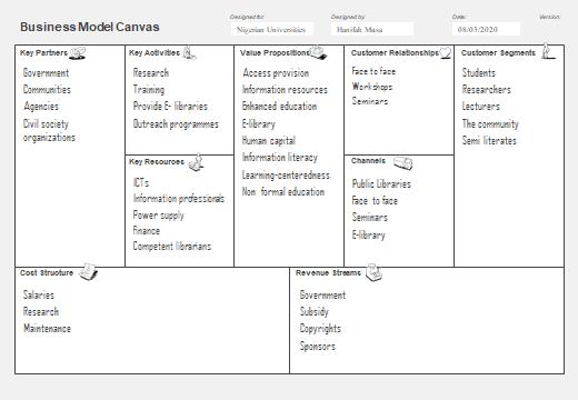 Validation of the initial BMC and VPC: The initial BMC was developed off literature reviews based on research findings from the authors. The BMC was validated by the Director of International Unit of IIUM and VPC validated by the various CS. An interview was conducted with fifteen (15) Nigerian university students and two (2) lecturers from different universities, as well as with three (3) graduates who were all interviewed via online platform. The following findings were unraveled after conducting interviews: